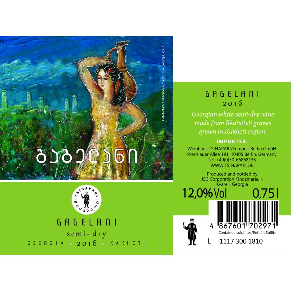 Objevte jedinečnost gruzínského vinařství s Gagelani Tsinapari, polosuchým bílým vínem vyrobeným z odrůdy Rkatsiteli. Tato odrůda je v Gruzii velmi oblíbená pro svou schopnost produkovat vína s vyváženou chutí a bohatým aromatickým profilem.